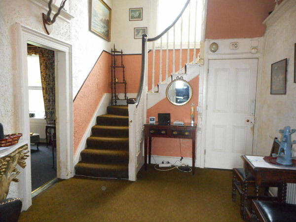 Added to at the sides, it has its rooms over three levels, with scope for up to six bedrooms, and the most attractive room is the L-shaped sitting/dining room, with wide bay window; it’s got sashes front and side, and another section has an arched sash window.