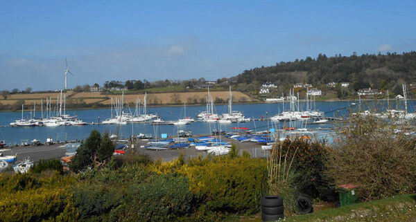 It’s set above the popular waterside walking route back towards Carrigaline on the old railway line, near the busy Grumpy & Wise cafe/restaurant and it has the dinghy park of the Royal Cork Yacht Club, and various moorings and many yachts, in the mid- distance.