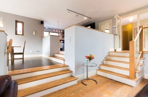 The wing at the front houses the main living areas and has a number of high windows with sea views, while the wing at the rear has most of the bedrooms. Modern and partly cedar-clad, itās timber-framed, made by Cork company, Atlantic Frame, and has German-made, double-glazed, aluclad pine windows.