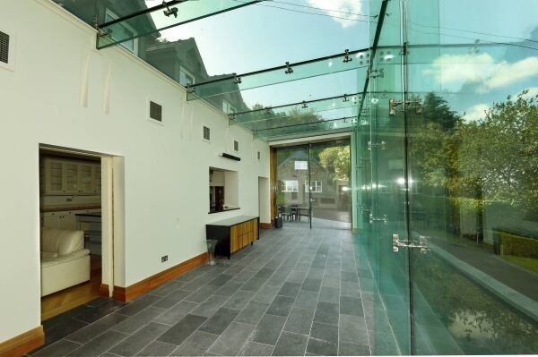 He vastly upgraded and enlarged it, the pool and sports complex links to what’s now a gym with overhead guest bedroom, and, then, most dramatically, right across the front of the main house he added a long, all-glazed pod, about 10m in length, and four metres deep and another four metres high, done as a domestic take on commercial glazing, complete with glass fins and bronzed ‘spider’ clamps: it utterly transforms the house’s impact, and utility.