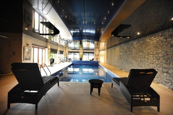 That pool is 11-metres long, with feature Liscannor stone wall and has an unusual membrane ceiling, stretched in shiny black Barrisol rubber, while the water is naturally filtered and oxygenated via E-clear technology, free of chlorine, smells and red-rimed eyes.