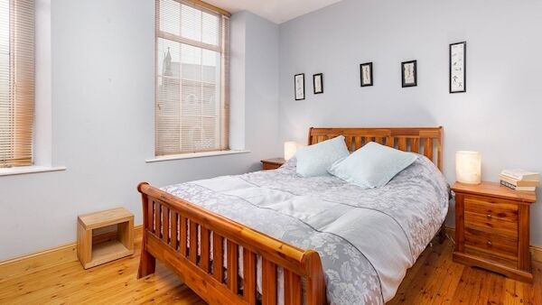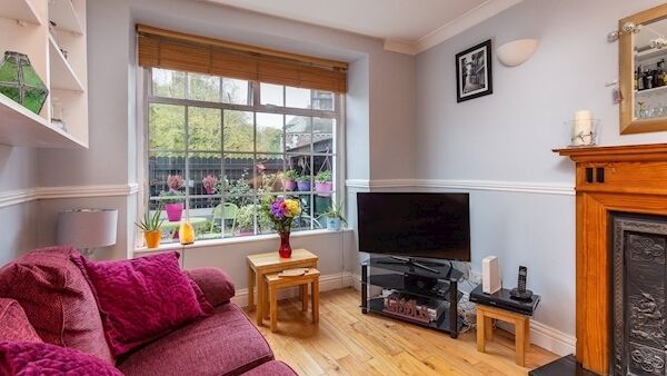 Almost directly facing the robust, hill-set sandstone and limestone St Luke’s Church, (now a feted live music venue) No 8 St Luke’s Place has a paved, screened-off semi-private sit-out front garden/yard, prettified with hanging baskets and ideal for bike, bin, and buggy storage as there’s only a small rear yard.