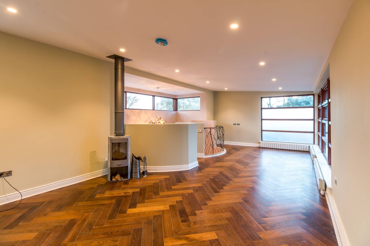 5. The Courtyard uppermost floor has a triple aspect, herringbone wood floor and a just-installed Contura wood burning stove.