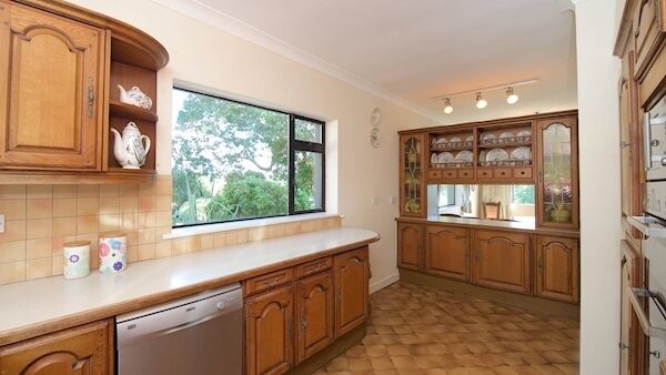 Most dated within is probably the kitchen, with its original oak units and a partial link to a dining room with views.
