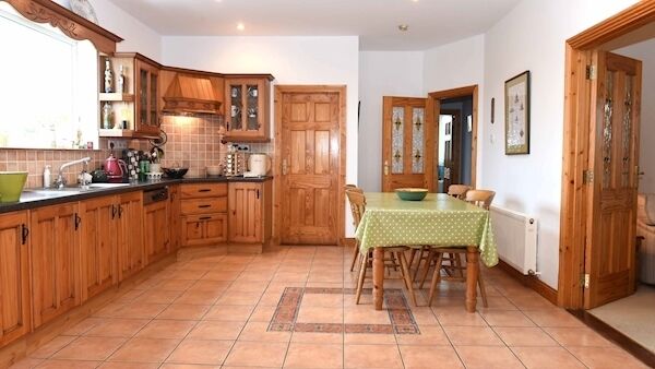 Externally, there are front and side gardens, particularly private to the back where there’s large deck off the sun room, with glimpses of hills in the far distance, well beyond the Mitchelstown road which runs out north of Mallow, under the incline St Josephs Road.