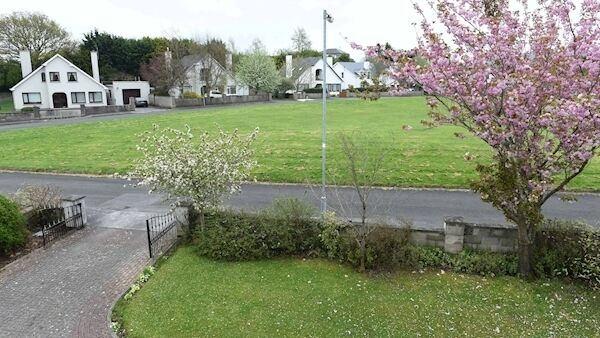 Discrete stone walls and pillars mark out the entrance to Castle Grove, with decades’ old mature hardwood trees lining both side of a verdant, uphill drive into Castle Grove, home to 30-40 detached houses, dormers in the main, on mature sites and the grove rounds out on the top with a large, triangular green in the centre of the uppermost homes, all well spaced out.