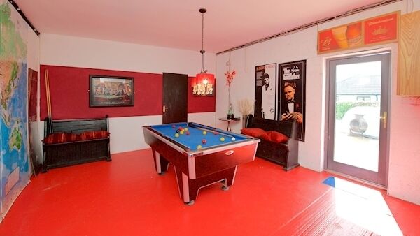 The family’s five, now adult children may have been similarly indulged? Seemingly a world away, but in reality just 25 metres from the back of the house is a stand-alone garden room/games room, done externally in a sort of rough, adobe looking painted render, complete with pool table, other games and WC, and next to it is a garage/workshop, also pristine.