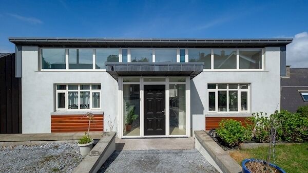 Built about 2010/11 on a prime site, it’s a contemporary designed home with a butterfly zinc and membrane, essentially two-storey but in three tiers, designed by Rush, Co Dublin-based architect Roger Bell of Bell Associates.