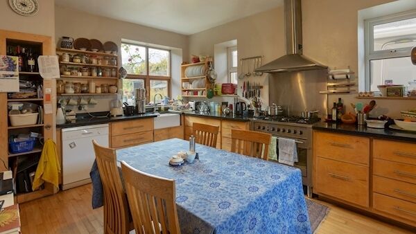 A door at the rear of one of the reception rooms leads to the kitchen. Fitted by the owners with maple units, granite countertops and a Belfast sink it has open shelving and all signs of being a well used kitchen where fruit from the gardens is turned in to jam.