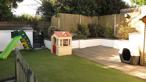 Thereās a lovely patio surrounded by raised beds and a garden area laid with Astroturf. Itās also westerly facing, making it a suntrap at certain times of the day.
