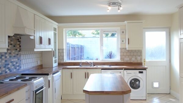 From the crisp lines of the exterior with its attractive muted sage colour teak front door to the methodically laid-out kitchen/dining room with plenty of eye- and floor-level cupboard space, this house is quietly, but not minimally, tidy.