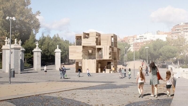 Half-close your eyes and you’ll see what we’re talking about — except instead of a trot along the Mardyke, if you were to get up close and personal with the innovative timber pavilion pictured, your stroll would be in Madrid.