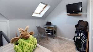 When first configured, this upper level also had a family bathroom with Jacuzzi bath; but, as it was rarely, if ever, used, it was taken back out, and was set up instead as a nursery/bedroom for visiting grandchildren.