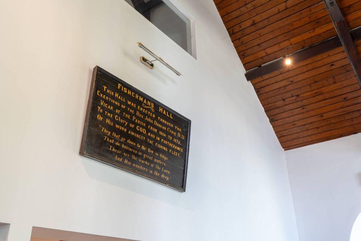 Apart from its physical embrace, the hall carries some traces of its long history, most notably a hand-painted plaque recalling the Fisherman’s Hall origins as “Erected by the Rev John Duncan Craig DD, Vicar of the Parish from 1864 to 1872 ‘to the Glory of God, and in furtherance of his work amongst the fishing fleet,’” and carried the hope that “They go down to the sea in ships, They do business in great waters: These see the works of the Lord and His wonders in the deep.”