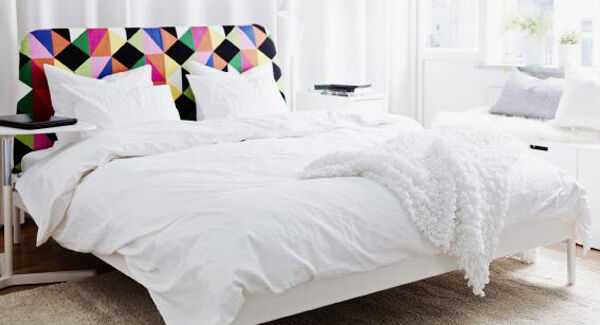 Ikea’s Dukan bed frame and headboard sum up the look with a combination of diamonds and triangles in just about every colour of the spectrum. It’s a big commitment aesthetically but can make a striking focal point set amongst timeless neutral décor and textiles.