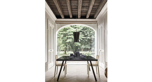 Gone too are the cold chrome legs, replaced by wood stained to the same dense shade as the glass. Italian brand Calligaris has launched the Frame table which sums up this approach, and as a nod to its roots in Mid-Century Modern styling, has finished the design with an angled leg.