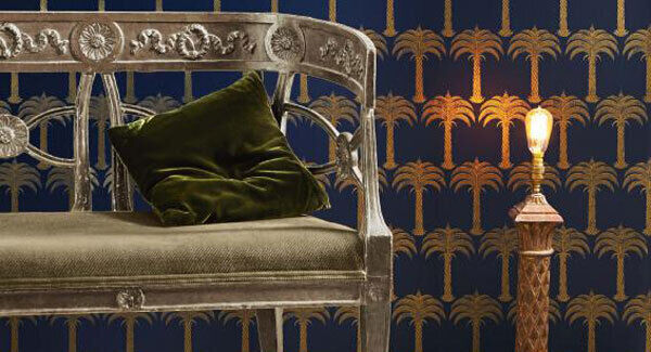 This season we’re tempted by the all-over wallpaper look with scenes from nature. Wallpaper designers Barnaby Gates ‘Marrakech Palm’(£78 p/roll) blends the deep tonal blue made famous by Yves St Laurent’s Marjorelle Garden in Marrakech with gold palm motifs in a repeat pattern.