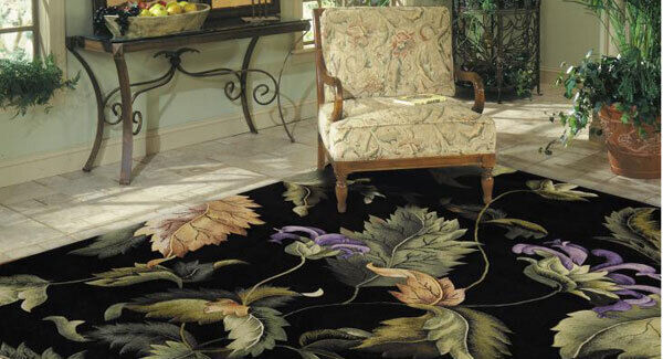 Casey’s Furniture’s Tropics rug (from €319) features muted leafy motifs set against a background of black with a pop of eye-catching lavender.
