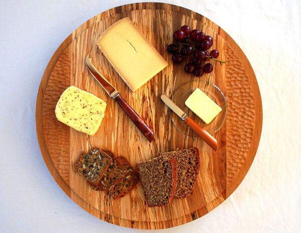 “Wood is not just for presenting cheese or smorgasbord but something from which to eat your cheese and crackers too,” he says.