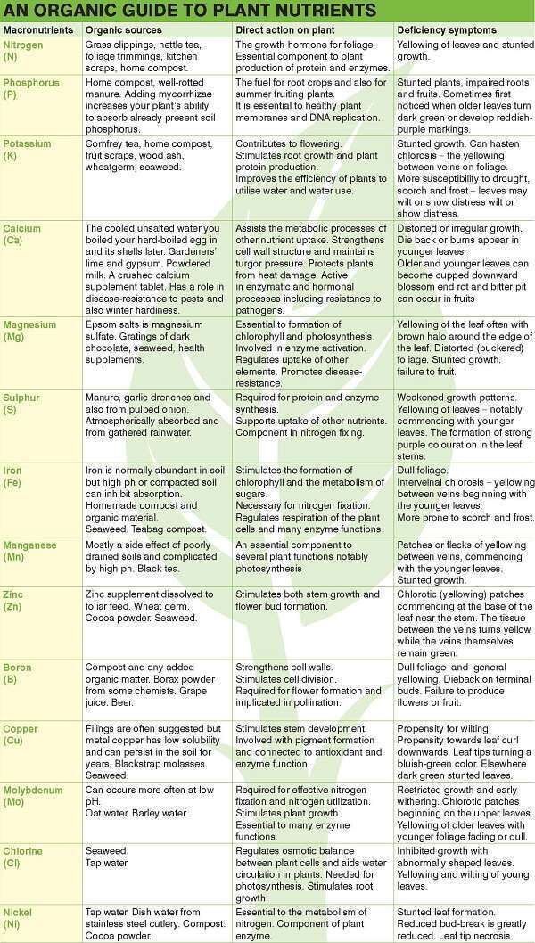 In terms of harvesting some macro and micro nutrients to ferment in a bucket of water, or to breakdown and release into the compost heap, the following chart will assist. It is science week after all!
