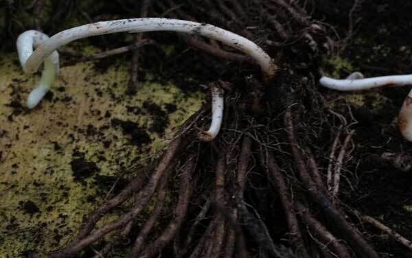 I make a sort of pyramid mound of sand to hold each crown and carefully untangle the octopus roots over the sides of it.