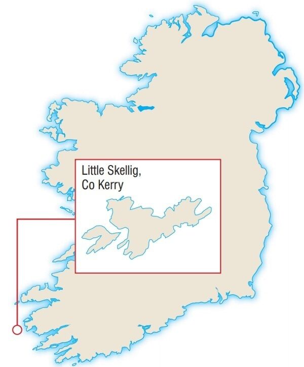 Little Skellig is the most important gannetry in Ireland with other significant colonies on the nearby Bull Rock on the Beara Peninsula, the Saltee Islands in Co Wexford and Lambay Island and Ireland’s Eye in Co Dublin.