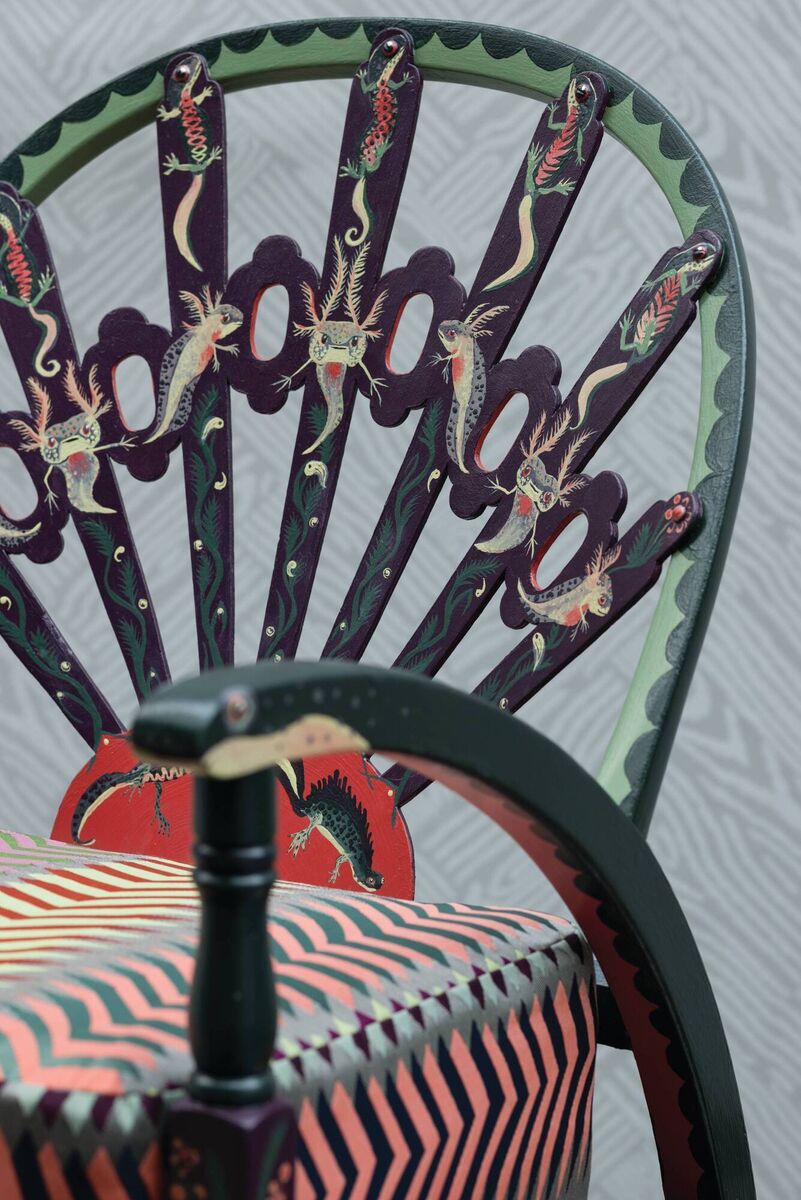 Nothing like a lick of paint to refresh — or in this case completely reinvent — your furniture. This is ‘Susy and Margo’s Newtiful Chair’ using Farrow & Ball colours — the wall is Parquet, the chair is Pelt, Studio Green, Breakfast Room Green, Clunch, Estate, Eggshell and Blazer. My dream job would be Paint Colour Name Maker-Upper. Imagine. www.farrow-ball.com.