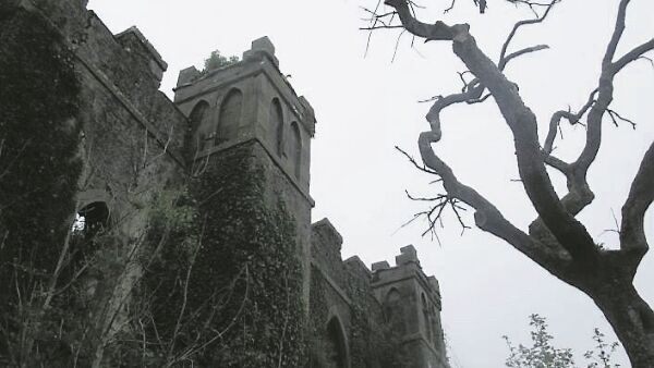 High, Norman-type arched windows, a limestone facade blackened over the years. A deserted castle, no one around. Trees and briars make access almost impossible. What on earth happened here? A sign warns hopeful visitors to stay away. The walls are dangerous. Chunks of masonry may come down. Sure enough, inside the castle, an entire wall looks ready to peel away and come crashing down.