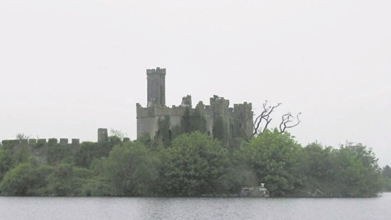 This is not a castle in the true sense of the word. It is rather a folly — a whimsical structure. It never served as a castle in the sense of having a resident chieftain or household. It was built on the island in the Rockingham Estate near the town of Boyle in the years after the construction of the main mansion which was built in 1803 on the shores of Lough Key.
