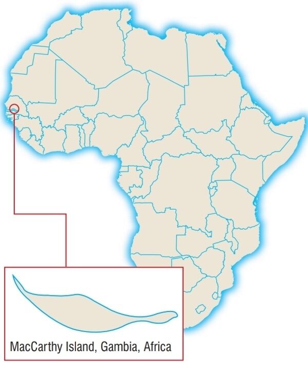 MacCarthy Island is nestled in a crook of the meandering Gambia river, which is more than 1,100 km long. To get there necessitates a 270km, three-day river trip or a 450km road trip from Gambia’s capital Banjul in tropical heat. The impoverished country of 2m people finally wrested its independence from the British in 1965.
