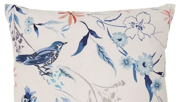 The watercolour Bird cushion has an artistic painterly quality to the pattern with soft blue and pink detailing, making it a lovely choice for bedrooms (€32).