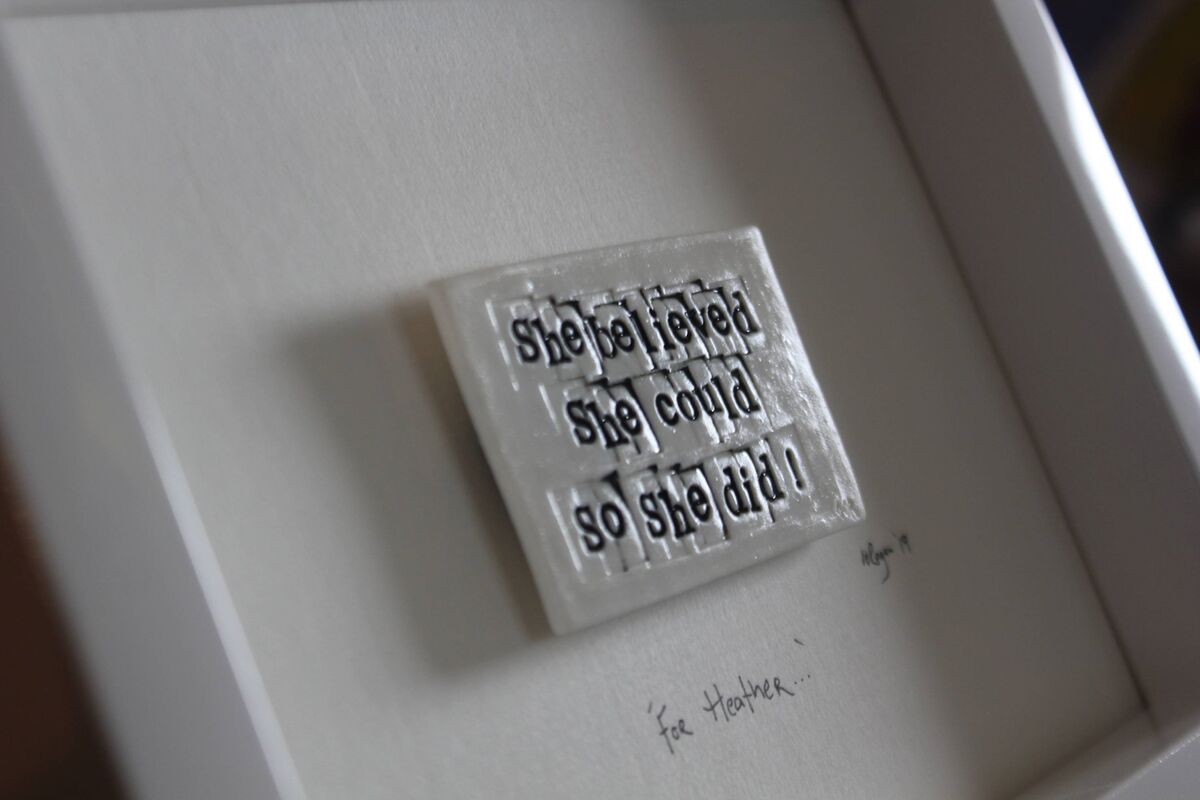Some days I am just making in the studio, creating Words in Porcelain from raw clay and preparing it for firing in the kiln. Other days are spent framing, packaging, posting and admin days. My work is mainly bespoke, ensuring that what I’m at is never mundane.