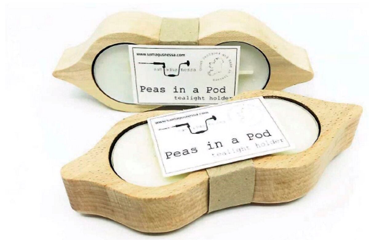 6. Feast your eyes on these wonderful wooden tealight holders by Sam agus Nessa. They are handmade from natural, sustainable, Irish hard timber and finished using local beeswax in their workshop in Kildare. The pod is crafted to fit a pair of tealights like, well, two peas, I suppose.