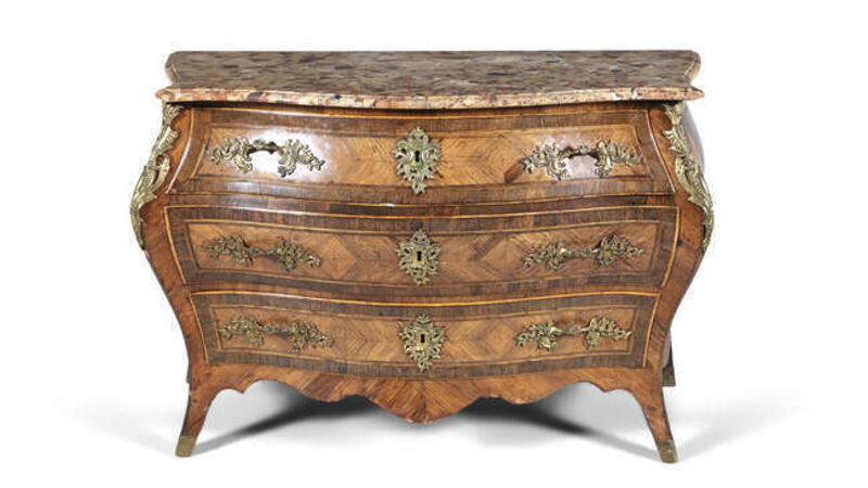 A Louis Quinze commode with marble top at Adam's.