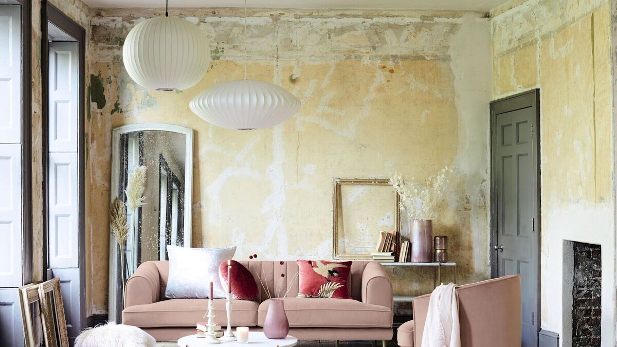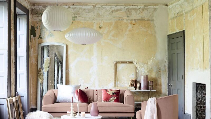 An older property falling into decay can be made comfortable and welcoming with new furniture and accessories, while making a feature of old paintwork and worn floorboards (Enchanted four-seater sofa from www.dfs.ie €1,029).