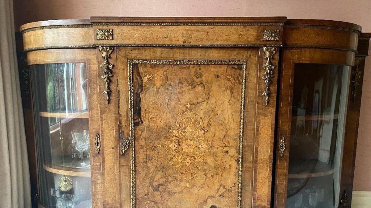 A walnut credenza at the virtual fair today and tomorrow.