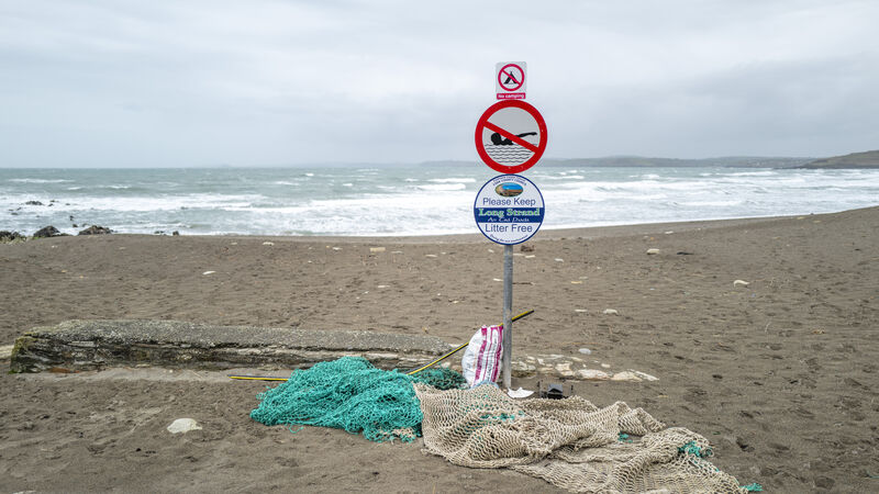 Old fishing nets and plastic rubbish gathered from the beach at Long Strand, West Cork. File Picture Dan Linehan