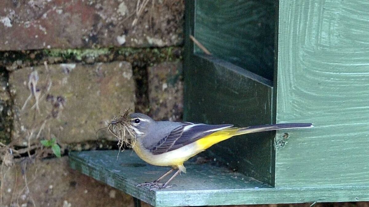 A grey wagtail in the process of building a nest in one of a number of bird boxes which have been put up in Fermoy by Christy Dorgan. Picture: Denis Minihane.