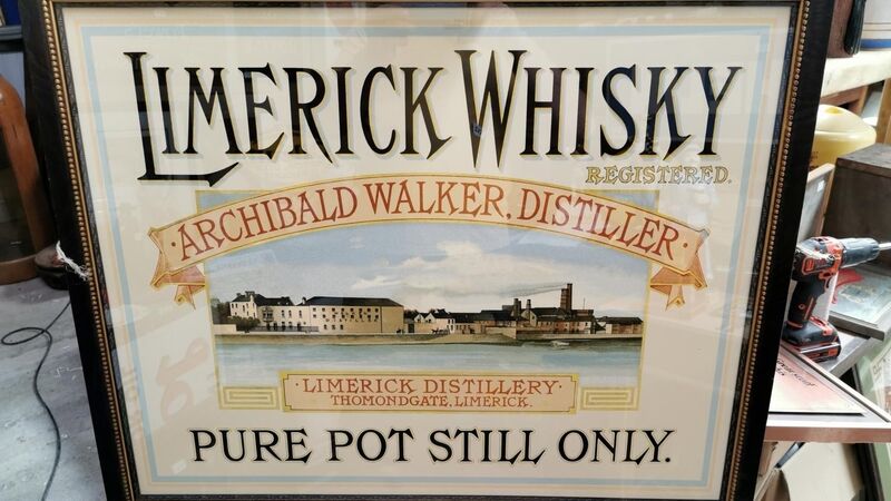 A Limerick Whisky Archibald pure pot still framed advertising print at Victor Mee.