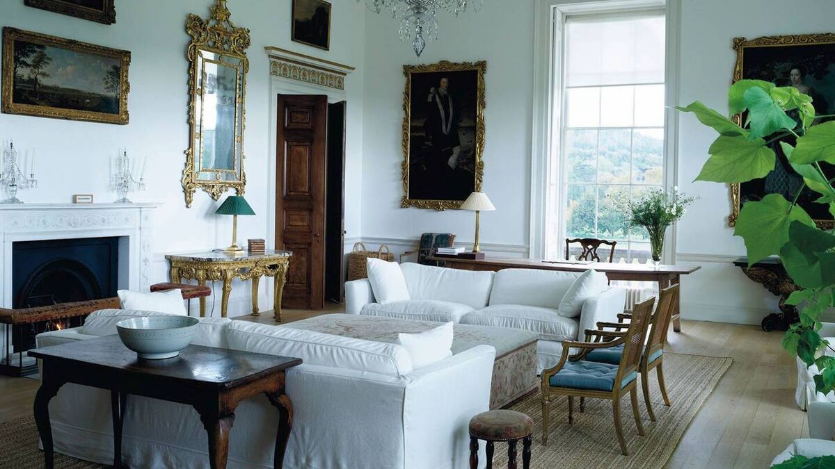 The white drawing-room from Jasper Conran's apartment at New Wardour Castle. Christie's say it offers a refined contemporary approach to the best of country house style.