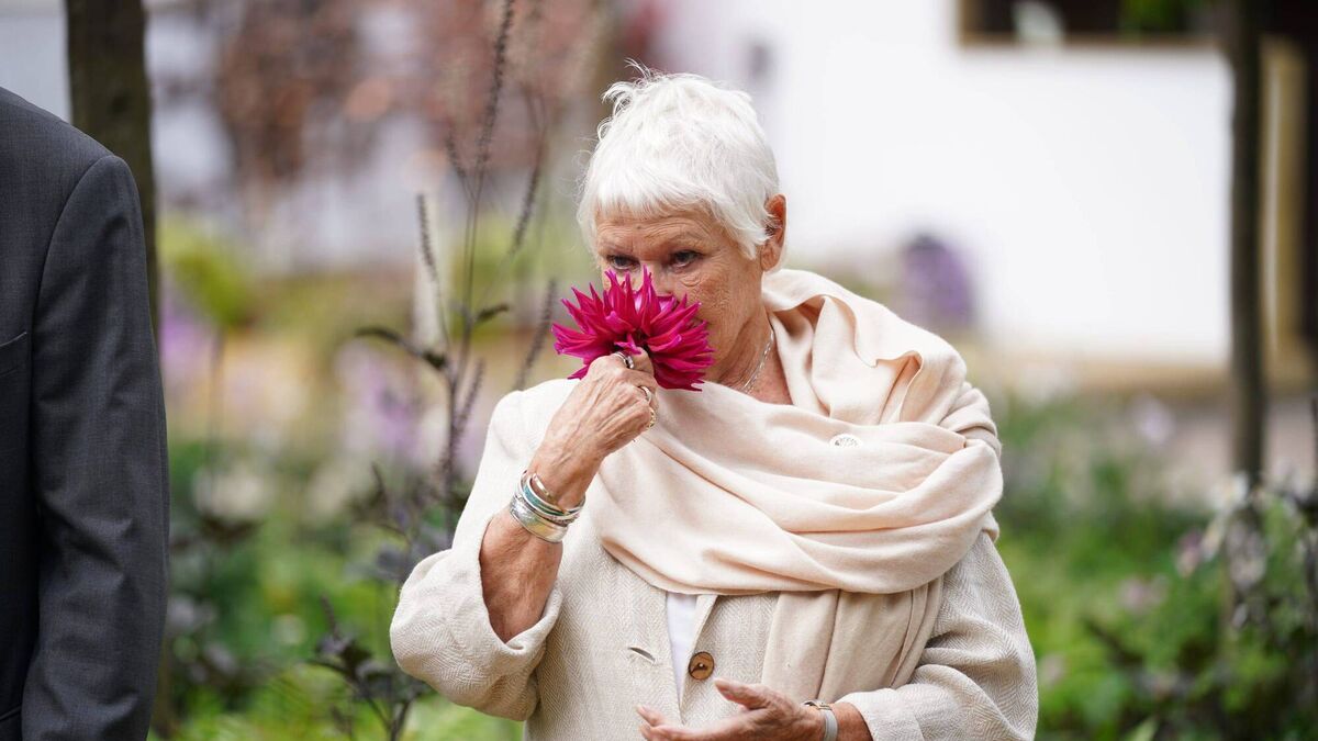 Dame Judi Dench sniffs a bloom at the Royal Hospital Chelsea. Picture: Yui Mok/PA