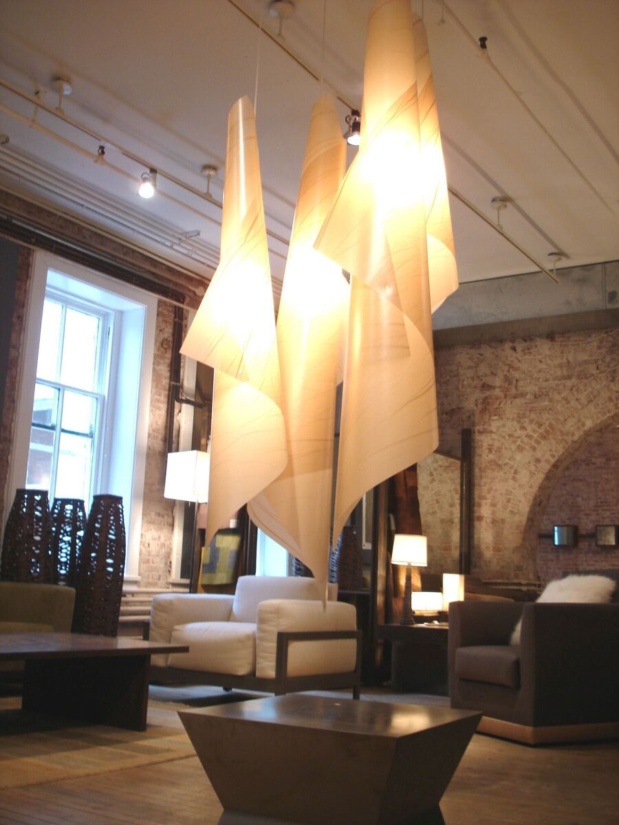 "Start from the ceiling down. If it’s a space with a high ceiling you can opt for a statement piece chandelier or one or two pendants.”