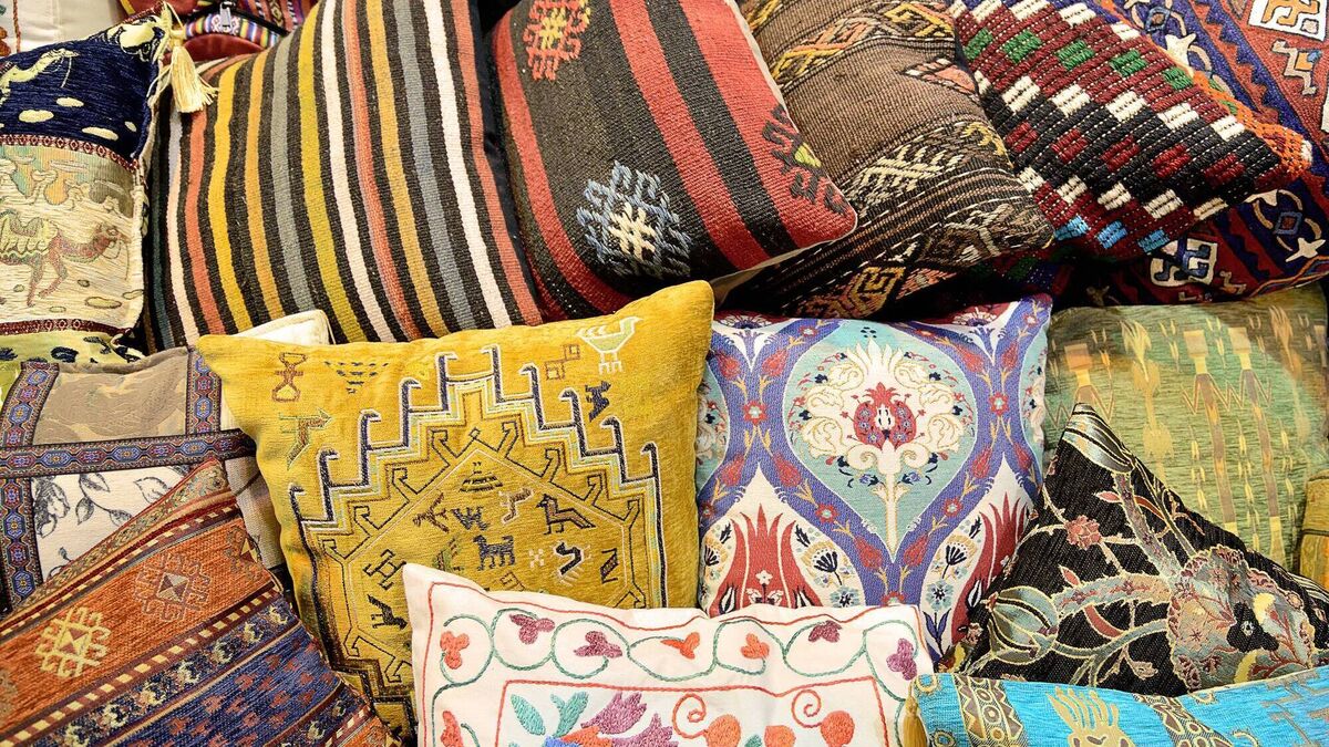 Cushions made up with vintage materials or old rugs, timeless originals. Turkish Kilim pillows made from distressed rug parts from €40 without filler, etsy.com