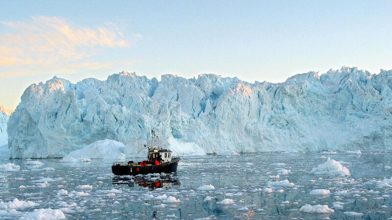 A fishing boat on Greenland's western coast. As the icecaps melt, the poles darken, absorbing even more sunlight. Picture: Slim Allagui AFP/Getty Images
