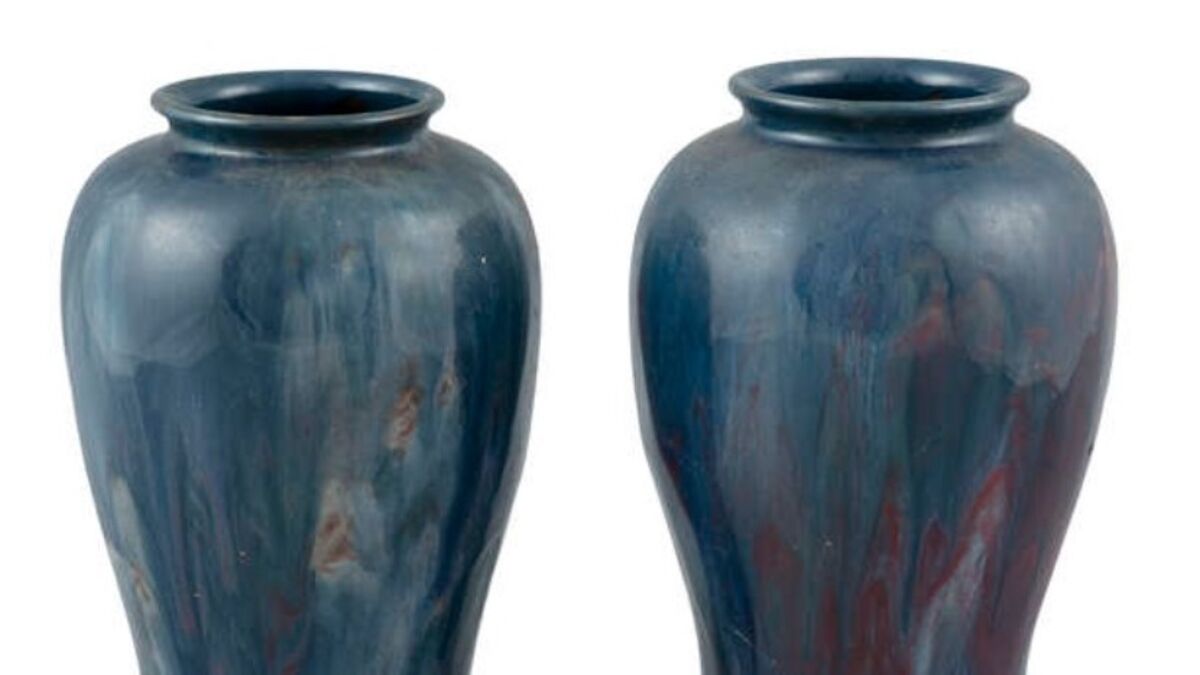 A pair of Carrigaline baluster vases, each with an attractive blue undulating glaze and 23cm high, made €280 at the latest James Adam At Home sale in Dublin.