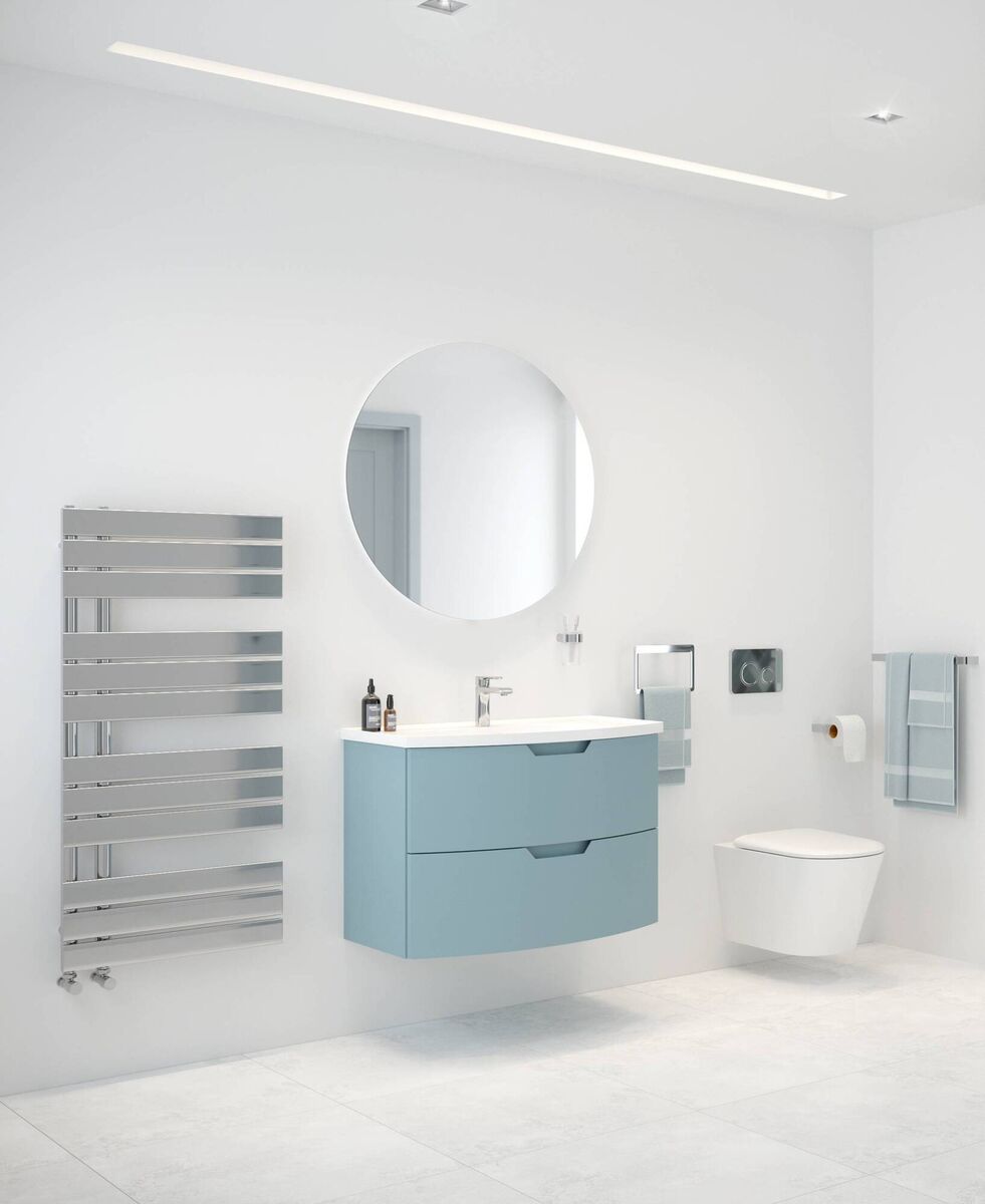 Keeping on the theme of colours of the year, Dulux has picked Blue Skies, and this ARC vanity unit in Morning Sky Blue from SONAS Bathrooms gives a nod to that relaxing tone. The two-drawer piece is €895 accompanied with the Alex 800mm round LED backlight mirror for €495. For more see www.sonasbathrooms.com.