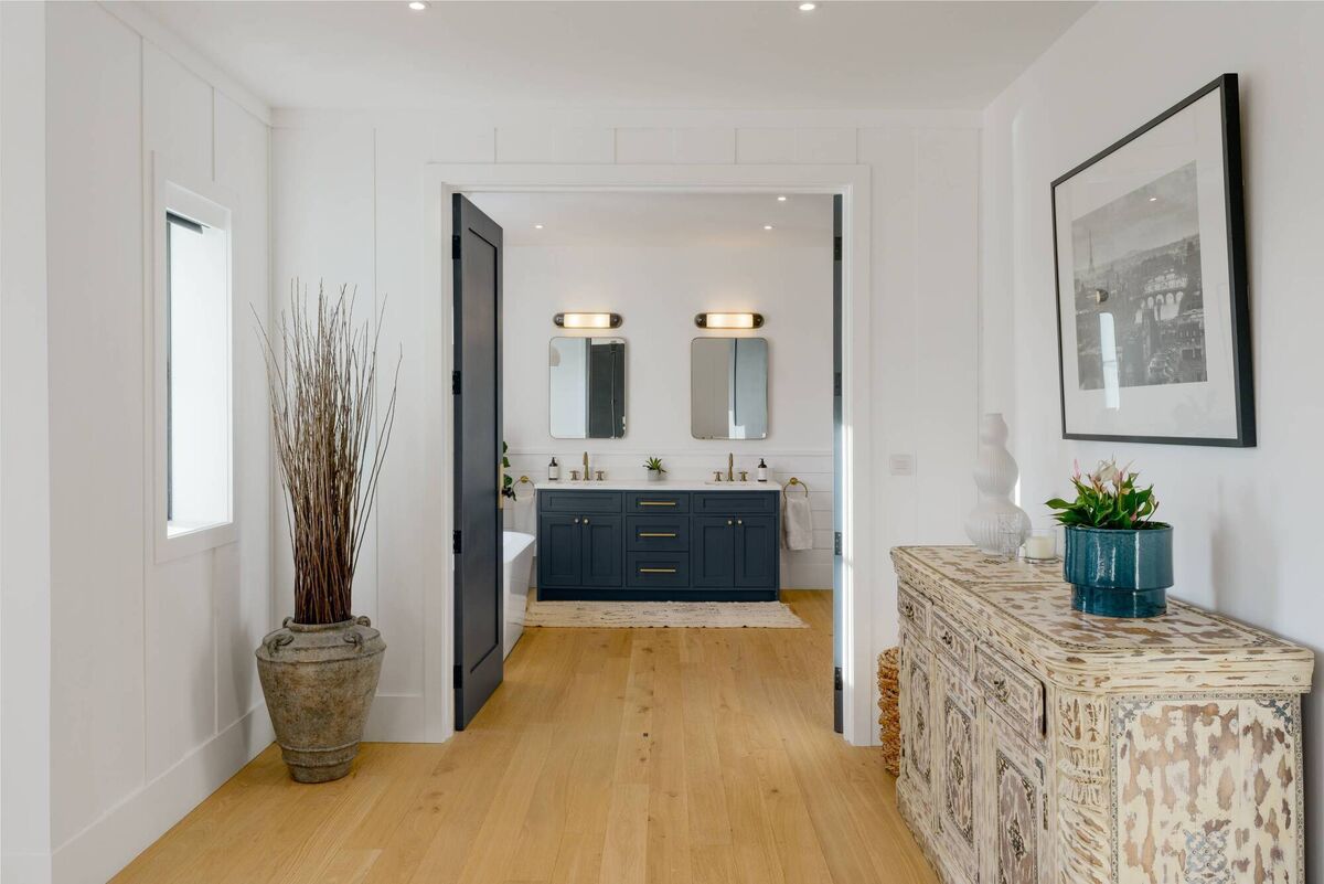 The wide hallway opens into comfortable, ultra-relaxing ground-floor living spaces, and a kitchen area with a large island, where the family breakfasts.