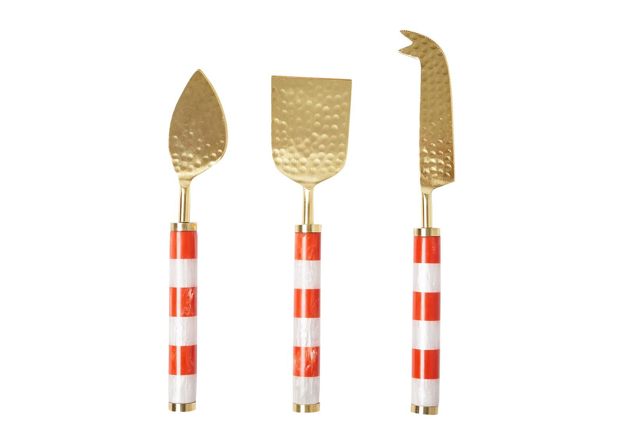 Little touches like candy stripe cheese knives make a joyous addition to mealtimes, and this trio can be themed to a cheese and wine party.
