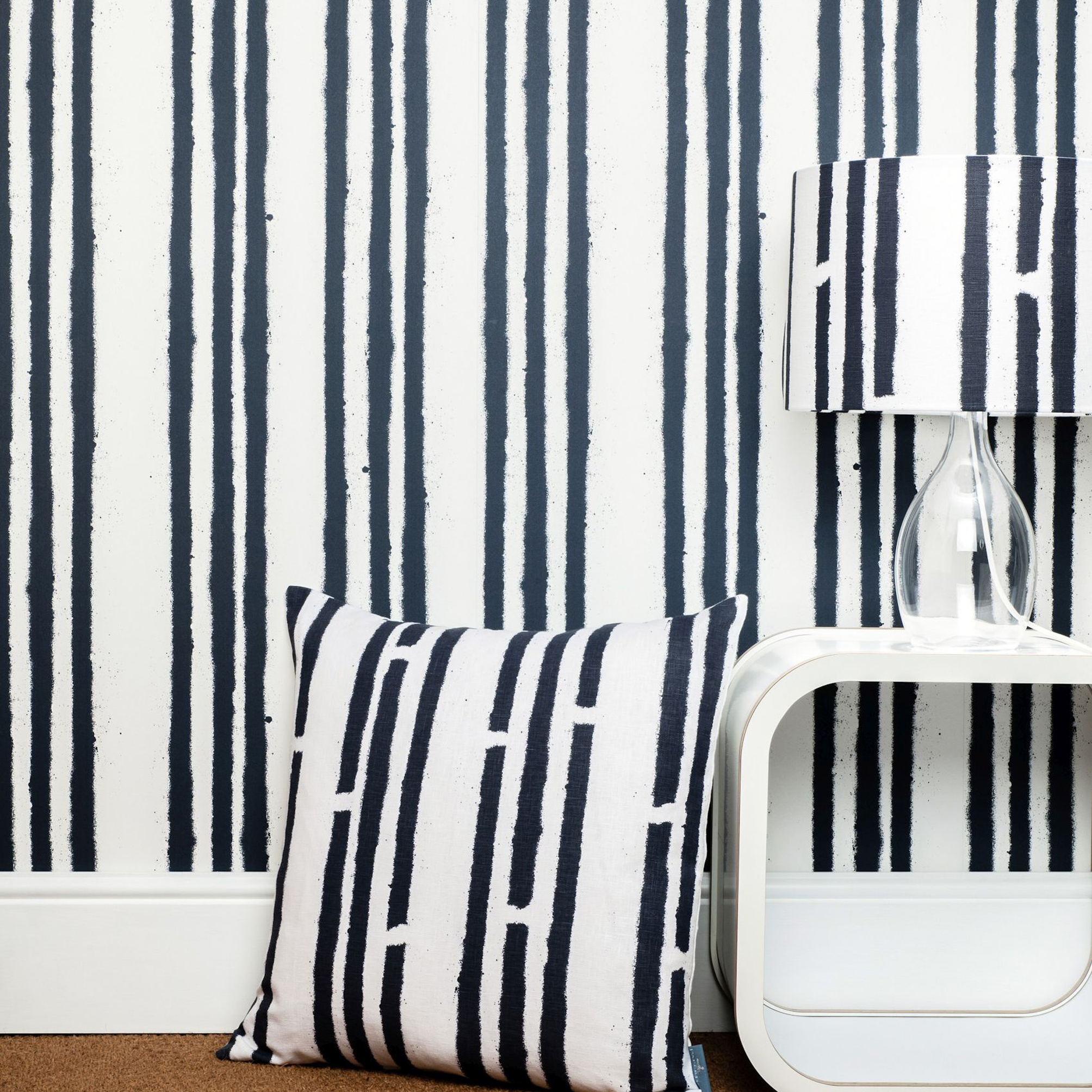 When more is more, we love this graffiti spray stripe, which can be enhanced with corresponding cushions and other navy and white decorative pieces.