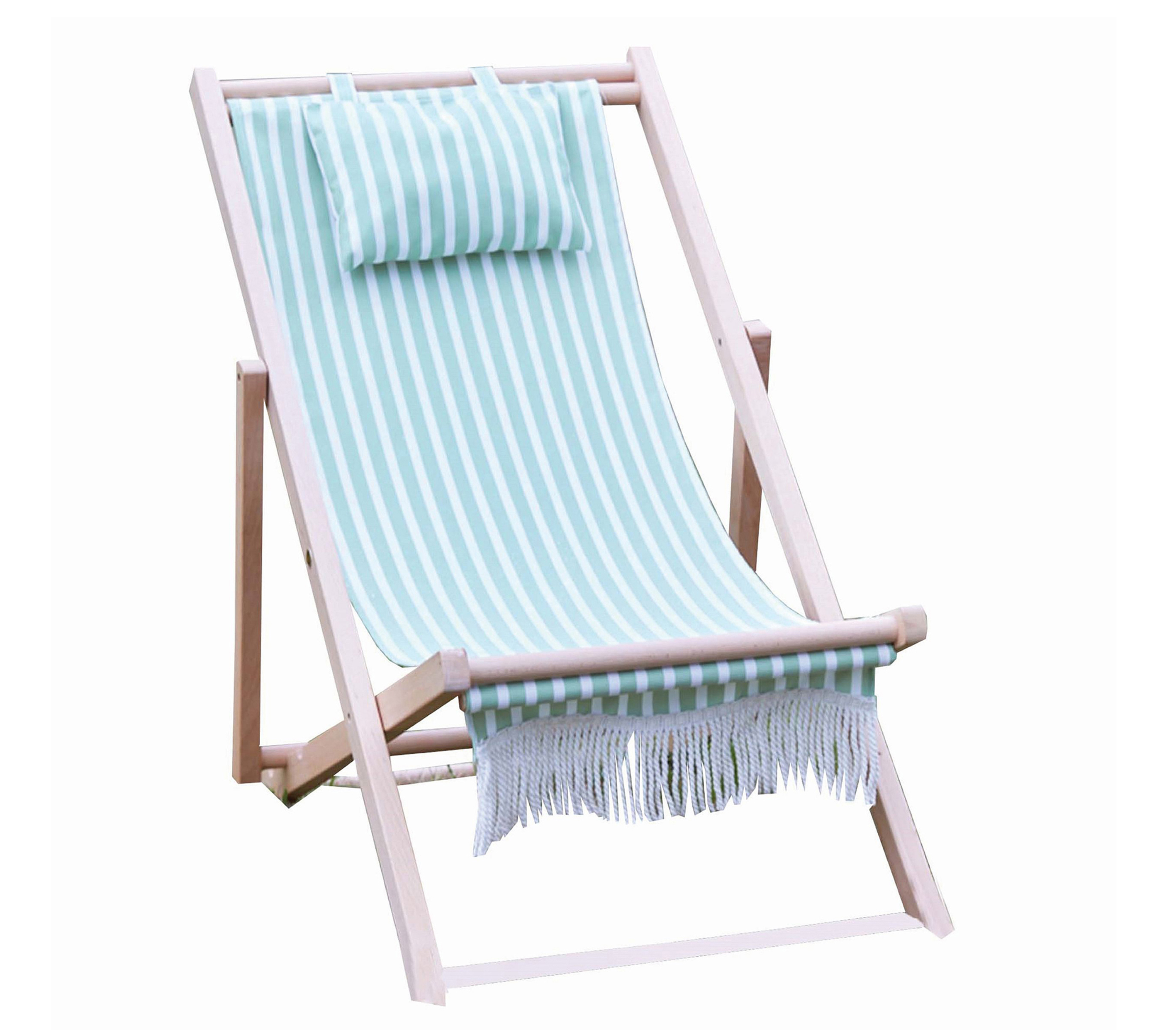 12. Green Striped Wooden Deck Chair with Head Cushion, Gardenesque